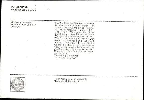 Ak Schauspieler, Sänger, Peter Kraus, Portrait, Autogramm