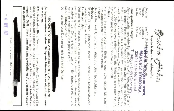 Ak Schauspieler Sascha Hehn, Portrait, Autogramm