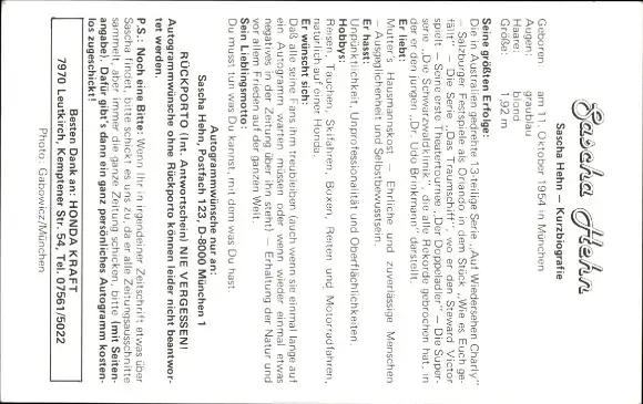 Ak Schauspieler Sascha Hehn, Portrait, Autogramm