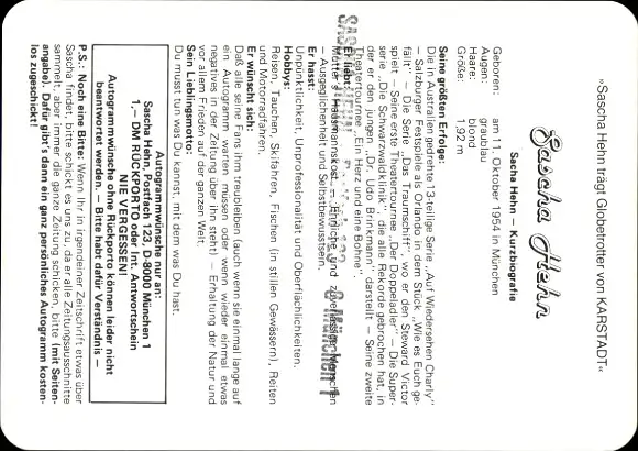 Ak Schauspieler Sascha Hehn, Portrait, Autogramm