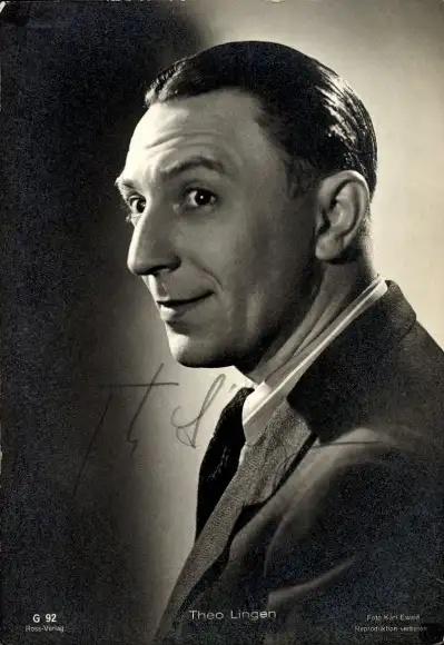 Ak Schauspieler Theo Lingen, Portrait, Autogramm, Ross G 92