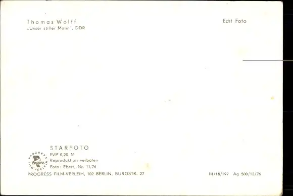 Ak Schauspieler Thomas Wolff, Portrait, Unser stiller Mann