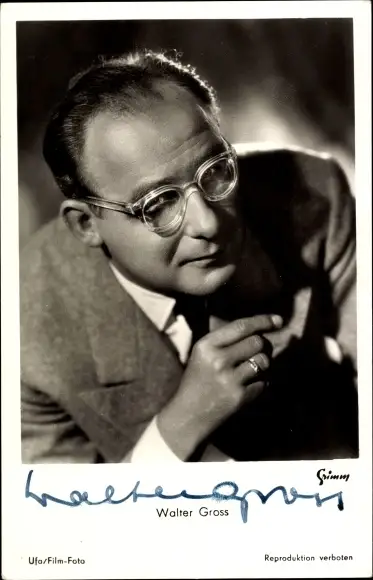 Ak Schauspieler Walter Gross, Autogramm, Portrait, Brille