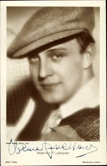 Ak Schauspieler Werner Fuetterer, Portrait, Mütze, Tennisschläger, Autogramm