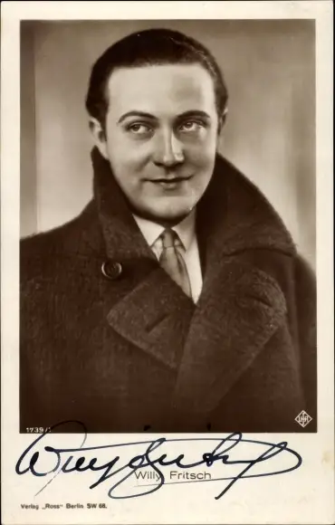 Ak Schauspieler Willy Fritsch, Portrait, Mantel, Ufa Verlag, Ross Verlag 1739 1, Autogramm