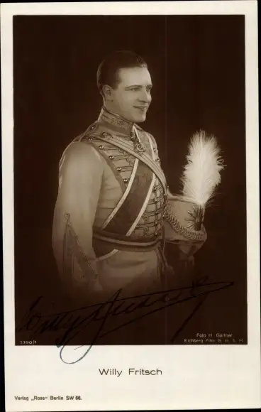 Ak Schauspieler Willy Fritsch, Portrait in Uniform, Autogramm
