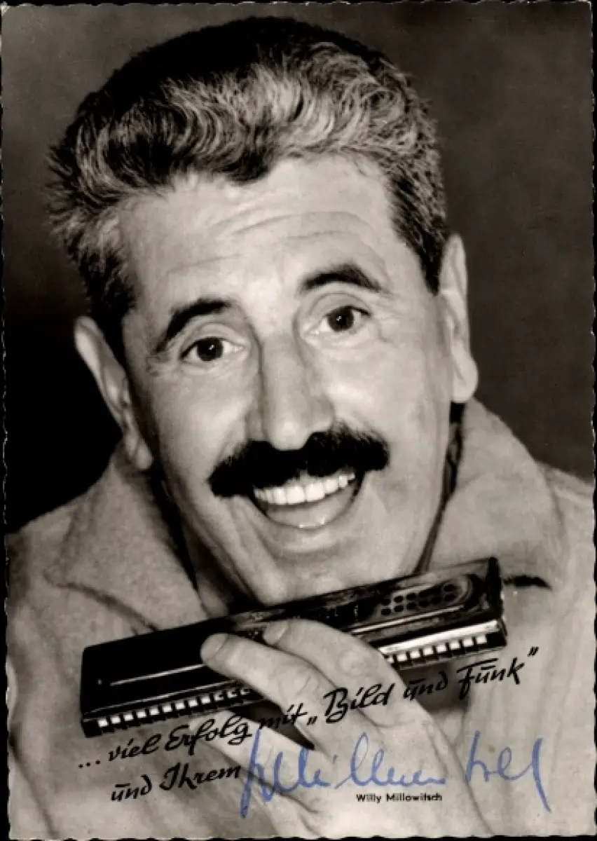 Ak Schauspieler Willy Millowitsch, Mundharmonika, Autogramm