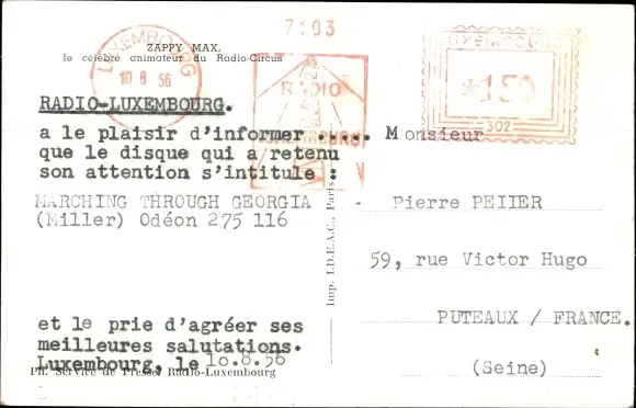 Zustand, siehe Scan, gelaufen, 1956 - ca 9 cm X 14 cm