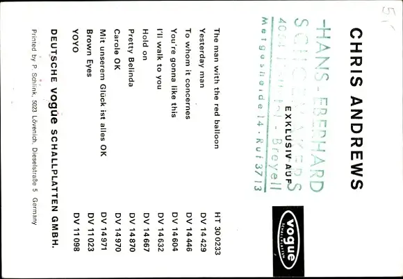 Ak Schauspieler und Sänger Chris Andrews, Portrait, Autogramm