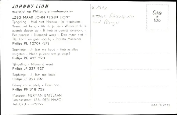 Ak Schauspieler und Sänger Johnny Lion, Portrait, Autogramm