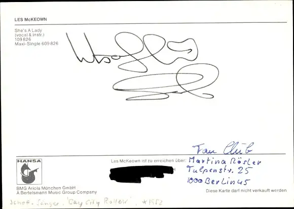 Ak Schauspieler und Sänger Les McKeown, Portrait, Autogramm