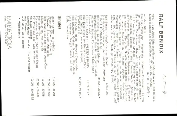 Ak Schauspieler und Sänger Ralf Bendix, Portrait, Autogramm