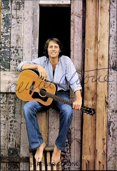 Ak Schauspieler und Sänger Reiner Schöne, Portrait mit Gitarre, Autogramm