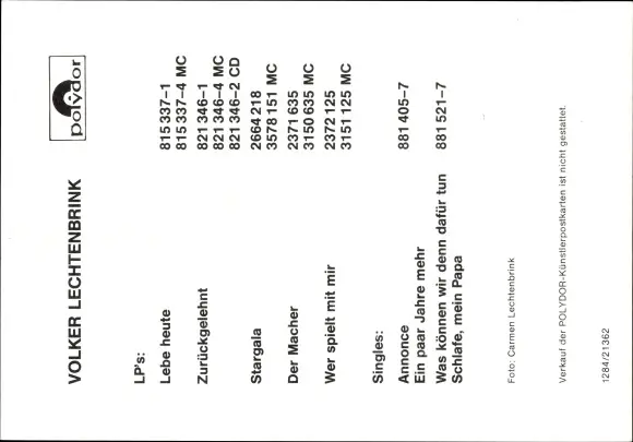 Ak Schauspieler und Sänger Volker Lechtenbrink, Autogramm, Portrait