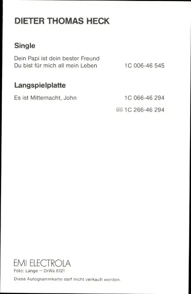 Ak Schauspieler und Sänger und Moderator Dieter Thomas Heck, Portrait, Autogramm