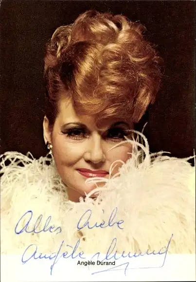 Ak Schauspielerin Angele Durand, Portrait, Autogramm, Federboa