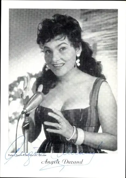 Ak Schauspielerin Angele Durand, Portrait, Autogramm, Mikrofon