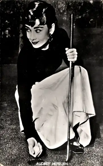 Ak Schauspielerin Audrey Hepburn, beim Minigolf