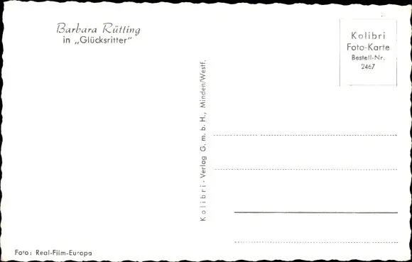 Ak Schauspielerin Barbara Rütting, Portrait, Glücksritter