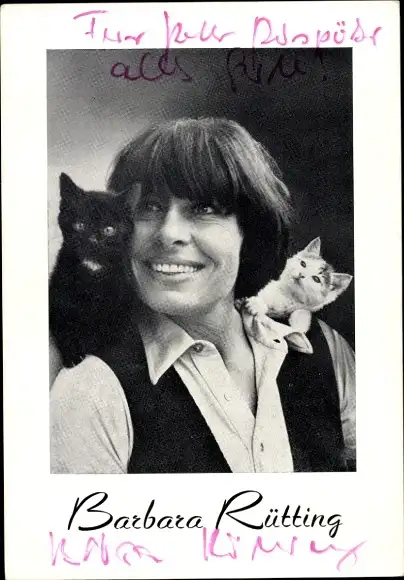 Ak Schauspielerin Barbara Rütting, Portrait mit Kätzchen, Autogramm