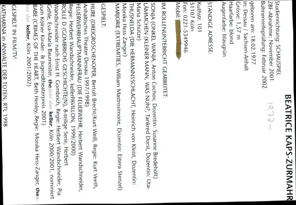 Ak Schauspielerin Beatrice Kaps-Zurmahr, Portrait, Autogramm