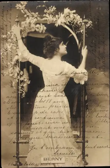 Ak Schauspielerin Berny, Am Spiegel, Blumen