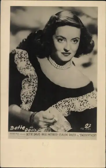 Ak Schauspielerin Bette Davis, Portrait, Filmplakat Deception