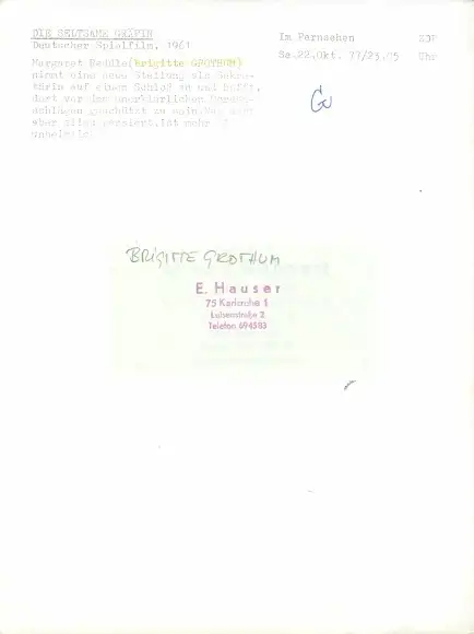 Ak Schauspielerin Brigitte Grothum, Die seltsame Gräfin, Autogramm