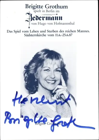 Ak Schauspielerin Brigitte Grothum, Portrait, Autogramm