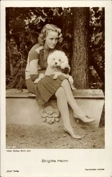 Ak Schauspielerin Brigitte Helm, bekannt aus Metropolis, Portrait mit Pudel