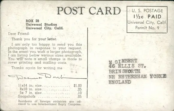 Ak Schauspielerin Deanna Durbin, Portrait