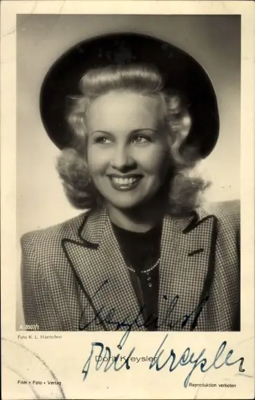 Ak Schauspielerin Dorit Kreysler, Portrait, Hut, Autogramm