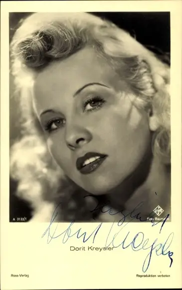 Ak Schauspielerin Dorit Kreysler, Portrait, Ross Verlag A 3133/1, Autogramm