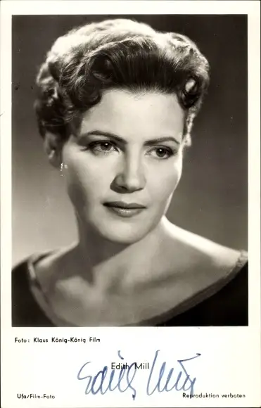 Ak Schauspielerin Edith Mill, Portrait, UFA Film, Autogramm