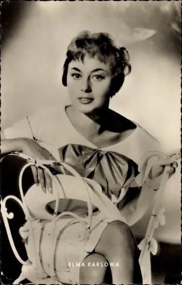 Ak Schauspielerin Elma Karlowa, Portrait auf einem Stuhl