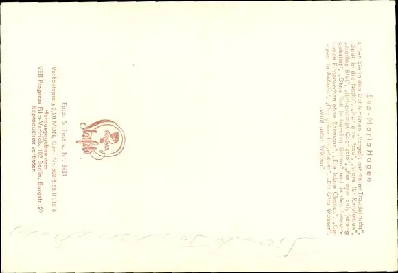 Ak Schauspielerin Eva Maria Hagen, Portrait, Defa Film For eyes only