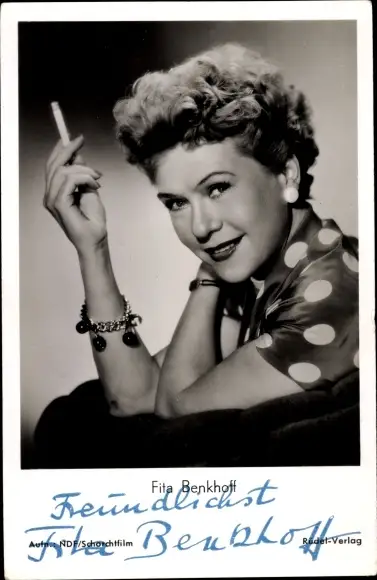 Ak Schauspielerin Fita Benkhoff, Portrait mit Zigarette, Autogramm