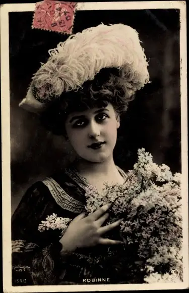 Ak Schauspielerin Gabrielle Robinne, Portrait mit Federhut, Reutlinger