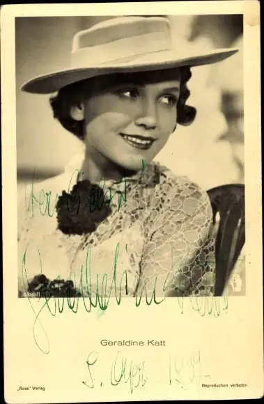 Ak Schauspielerin Geraldine Katt, Portrait, Ross