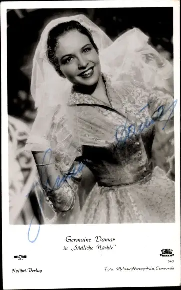 Ak Schauspielerin Germaine Damar, Autogramm, Portrait, Südliche Nächte