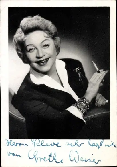 Ak Schauspielerin Grethe Weiser, Portrait mit Zigarette, Autogramm