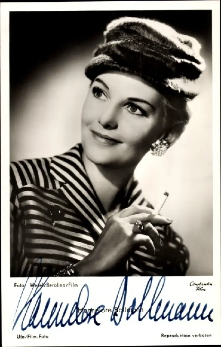 Ak Schauspielerin Hannelore Bollmann, Portrait mit Zigarette, Ufa Film, Autogramm