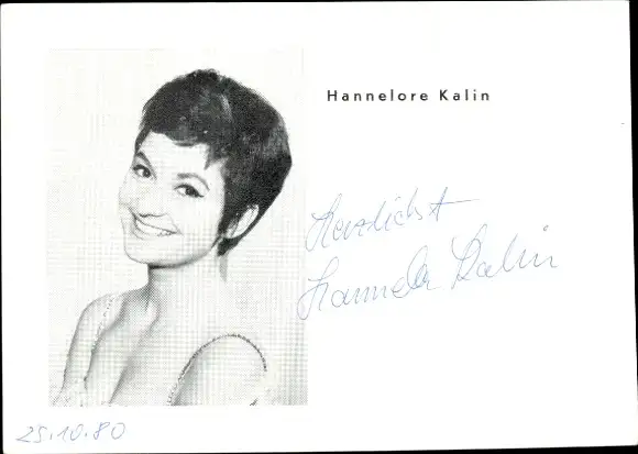 Ak Schauspielerin Hannelore Kalin, Portrait, Autogramm, Sängerin
