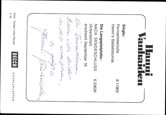 Ak Schauspielerin Hanni Vanhaiden, Portrait, Autogramm