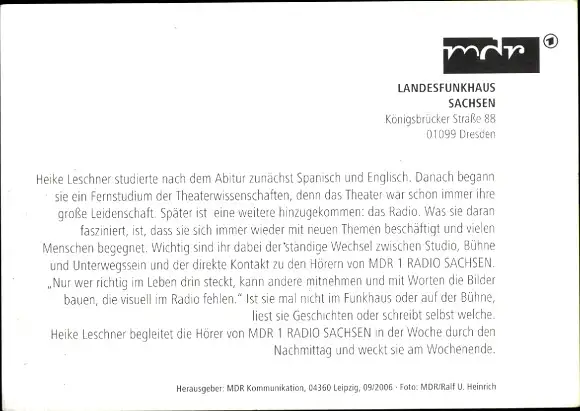 Ak Schauspielerin Heike Leschner, Portrait, Autogramm