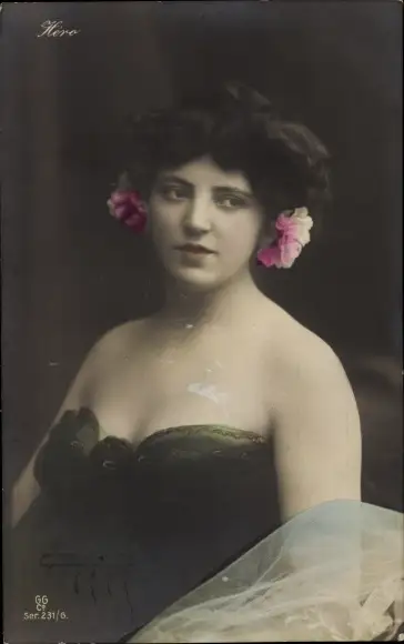 Ak Schauspielerin Héro, Portrait einer jungen Frau mit Blumen in Haaren