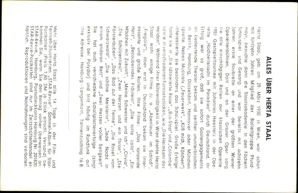 Ak Schauspielerin Herta Staal, Portrait, Autogramm