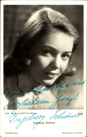 Ak Schauspielerin Ingeborg Schöner, Portrait, Autogramm