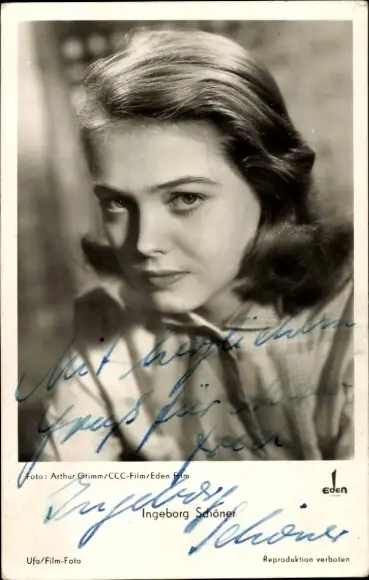 Ak Schauspielerin Ingeborg Schöner, Portrait, Autogramm