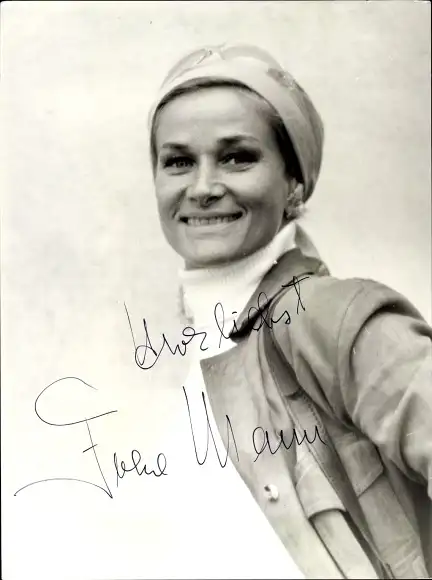 Ak Schauspielerin Irene Mann, Portrait, Autogramm, Kopfbedeckung
